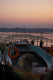 So, today’s shower was another lukewarm one. By 5:10am we were in the hotel lobby ready for a journey back to the ghats and to board a boat for a sunrise cruise down the Ganges. By the time we arrived the daily morning worship ritual was in full swing – at the same venue as last night’s sunset presentation. Our boat was ready so we boarded and headed out to the middle of the river where the captain cut the engine and we just drifted in silence. After 15 minutes the black/pink sky gave way to the huge red ball of the rising sun as it slowly crept its way above the G20 tents of the Tent City on the sandy eastern bank of the river. The shutter of the camera was in overdrive trying to get that one superb shot. To be honest, it was pretty hard to not get a shot that really tells the story of this sunrise.